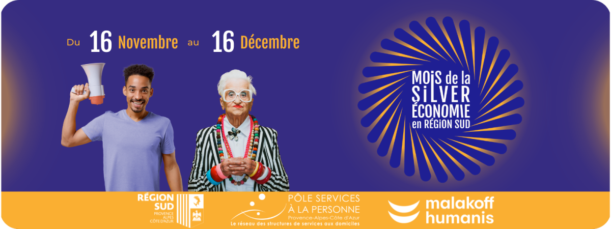 Le Pôle Services à la Personne, avec le soutien de la Région Sud et de Malakoff Humanis, organise la 8ᵉ édition du Mois de la Silver Économie, du 16 novembre au 16 décembre 2026 !